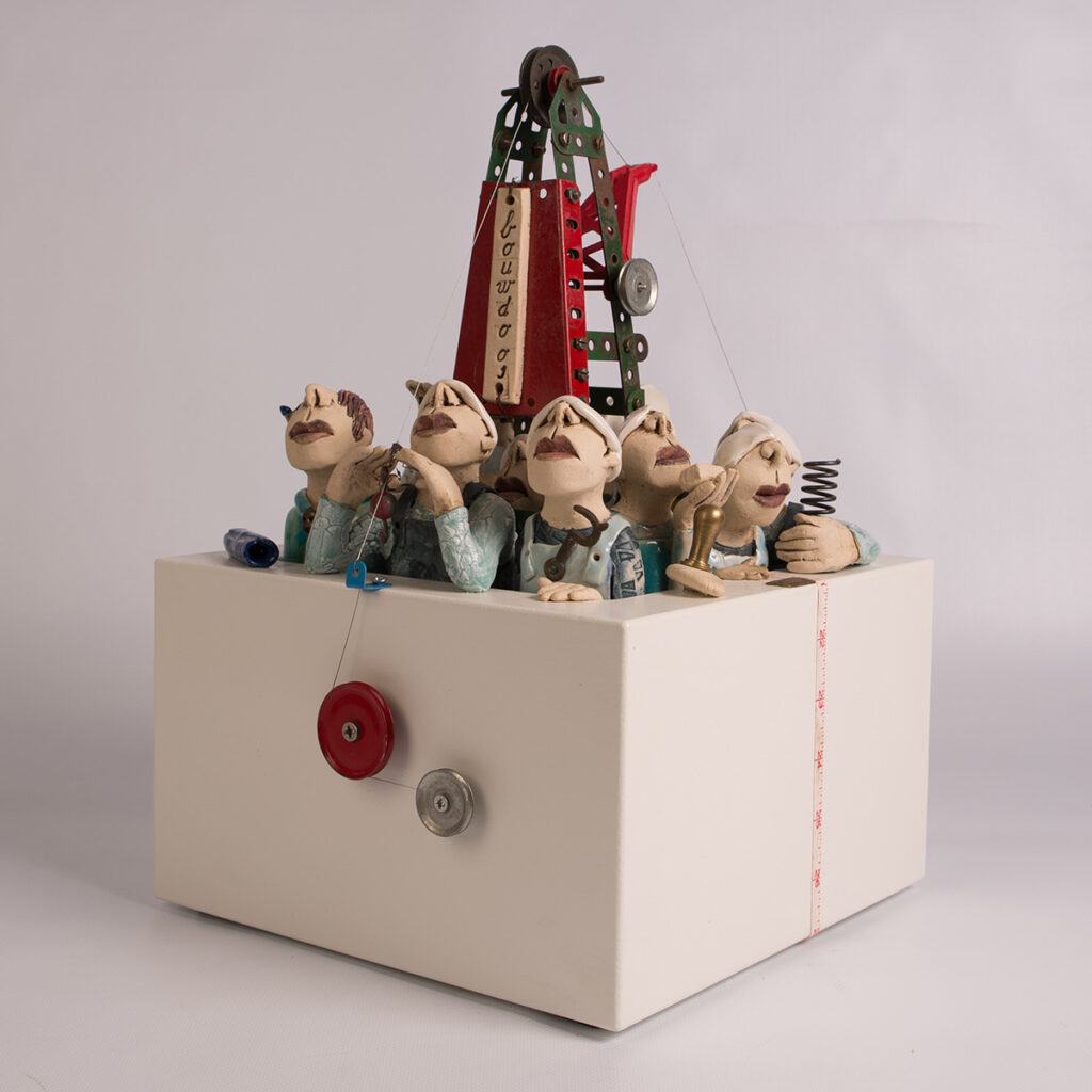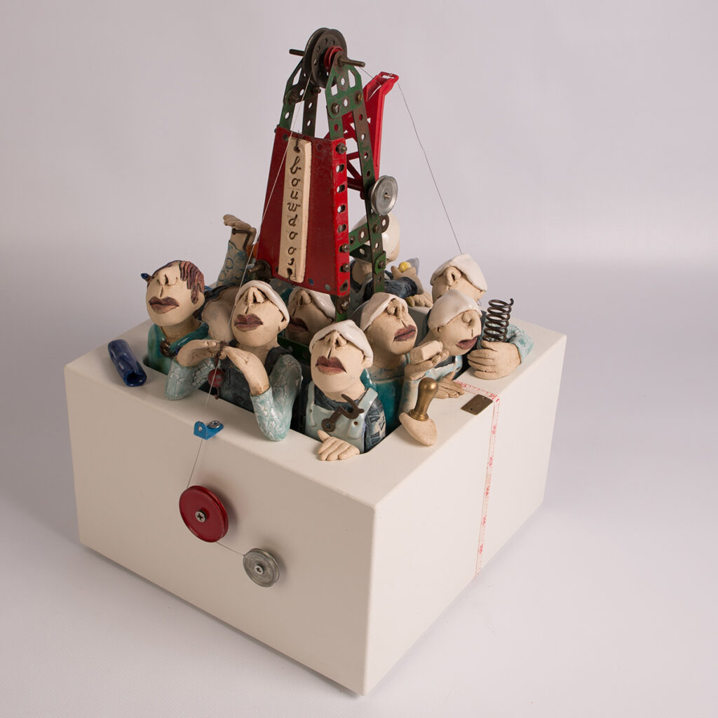 Keramiek gemaakt in ’n houten bak van MDF in de kleur RAL 9010. Met of zonder sokkel verkrijgbaar. Mogelijkheid om de naam of logo van uw bedrijf of instelling in te frezen in de sokkel of opzetstuk (mits groot genoeg). Ook verkrijgbaar als Wall-piece.